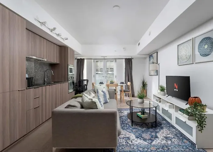 Disfruta de tus vacaciones en Toronto en el apartamento Sleek Urban 1Bd With Den Next To Yorkville Toronto. Ideal para quienes buscan una experiencia auténtica, está situado a 18 minutos a pie del Centro Eaton de Toronto y a 2 km de la Torre CN de Toronto.